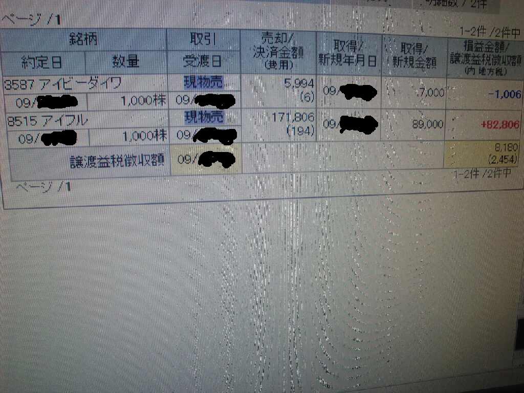 一部の方が疑ってるようなので、譲渡益税の明細貼っておきます。